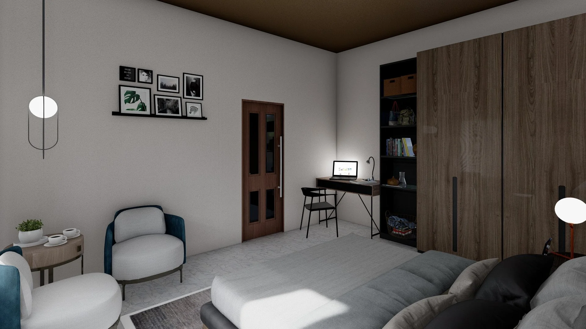 KS Design developed the creative direction for the main spaces of the residence, creating 3D visual concepts that help define the feeling of the project before execution.